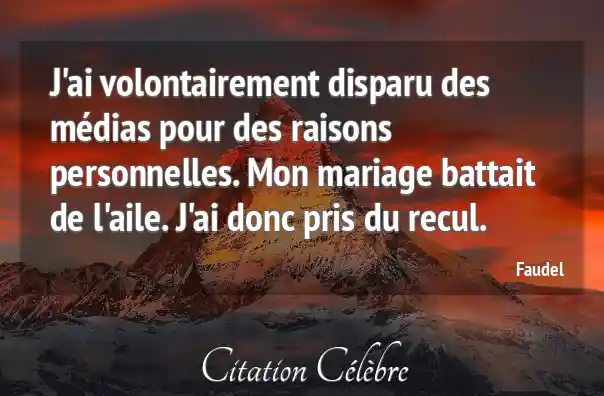 J'ai volontairement disparu des médias pour des raisons personnelles. Mon mariage battait de l'aile. J'ai donc pris du recul.