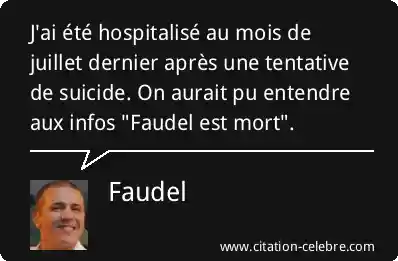 La citation s'inscrit dans un contexte où les problèmes de santé mentale et les tentatives de suicide chez les célébrités sont de plus en plus médiatisés et, heureusement, de moins en moins tabous. Le "mois de juillet dernier" fait référence à un événement très récent pour l'artiste au moment de la déclaration. Culturellement, le geste de Faudel de s'exprimer est un acte fort de déstigmatisation, encourageant le dialogue sur la dépression, un sujet souvent délicat, en particulier dans les communautés artistiques.