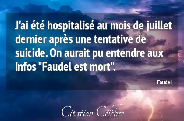 La citation est une déclaration faite par l'artiste Faudel lui-même. Elle a été prononcée ou publiée suite à un événement personnel grave survenu en juillet, souvent relayée dans des entretiens où il évoque cette période difficile de sa vie et son retour sur scène. Elle est une confession post-traumatique.