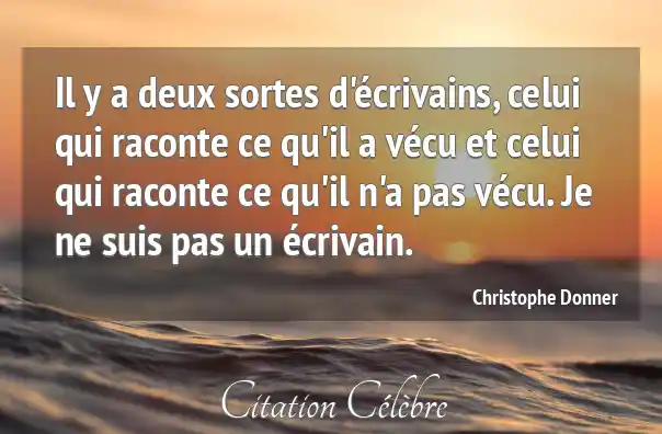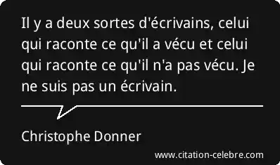 Il y a deux sortes d'écrivains, celui qui raconte ce qu'il a vécu et celui qui raconte ce qu'il n'a pas vécu. Je ne suis pas un écrivain.