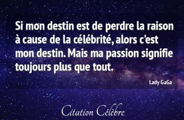 Si mon destin est de perdre la raison à cause de la célébrité, alors c'est mon destin. Mais ma passion signifie toujours plus que tout.
