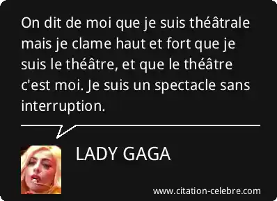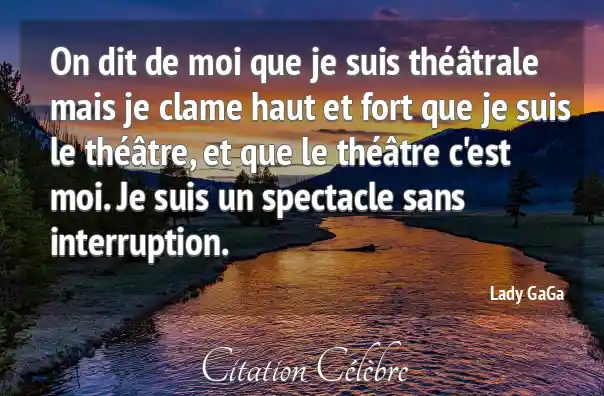 On dit de moi que je suis théâtrale mais je clame haut et fort que je suis le théâtre, et que le théâtre c'est moi. Je suis un spectacle sans interruption.