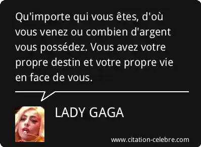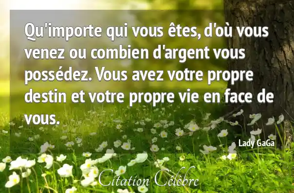 Qu'importe qui vous êtes, d'où vous venez ou combien d'argent vous possédez. Vous avez votre propre destin et votre propre vie en face de vous.