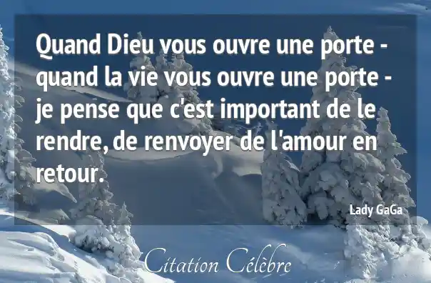 Quand Dieu vous ouvre une porte - quand la vie vous ouvre une porte - je pense que c'est important de le rendre, de renvoyer de l'amour en retour.