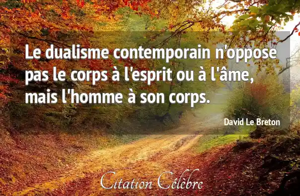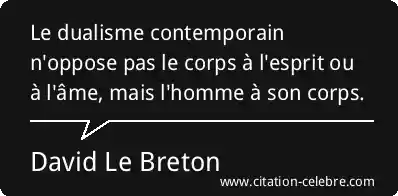 Le dualisme contemporain n'oppose pas le corps à l'esprit ou à l'âme, mais l'homme à son corps.