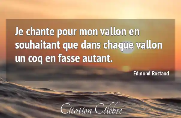 Je chante pour mon vallon en souhaitant que dans chaque vallon un coq en fasse autant.