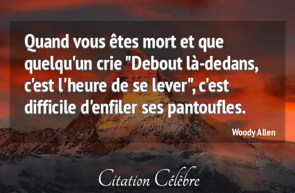 Quand vous êtes mort et que quelqu'un crie "Debout là-dedans, c'est l'heure de se lever", c'est difficile d'enfiler ses pantoufles.