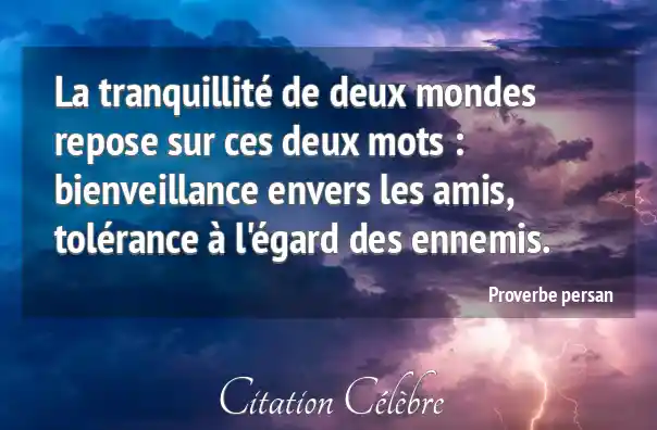 La tranquillité de deux mondes repose sur ces deux mots : bienveillance envers les amis, tolérance à l'égard des ennemis.