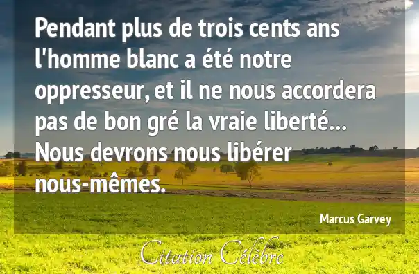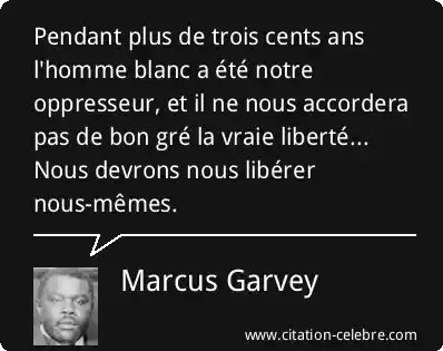 Pendant plus de trois cents ans l'homme blanc a été notre oppresseur, et il ne nous accordera pas de bon gré la vraie liberté... Nous devrons nous libérer nous-mêmes.