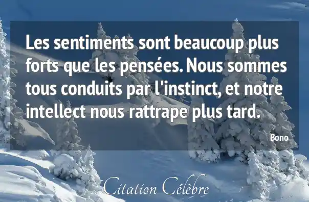 Les sentiments sont beaucoup plus forts que les pensées. Nous sommes tous conduits par l'instinct, et notre intellect nous rattrape plus tard.