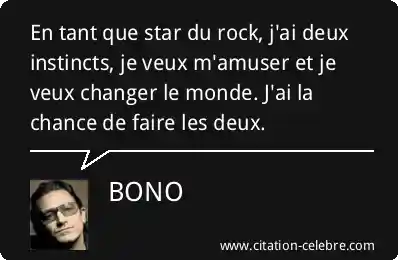 En tant que star du rock, j'ai deux instincts, je veux m'amuser et je veux changer le monde. J'ai la chance de faire les deux.