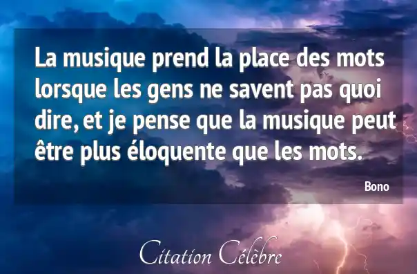 La musique prend la place des mots lorsque les gens ne savent pas quoi dire, et je pense que la musique peut être plus éloquente que les mots.