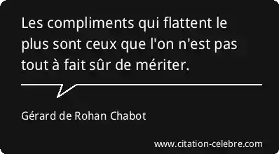 Les compliments qui flattent le plus sont ceux que l'on n'est pas tout à fait sûr de mériter.