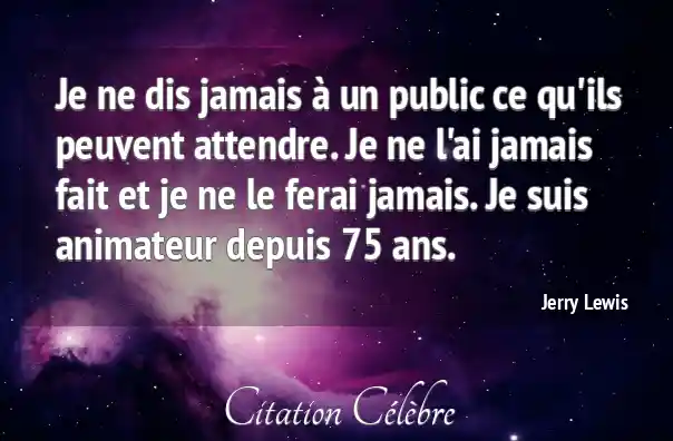Je ne dis jamais à un public ce qu'ils peuvent attendre. Je ne l'ai jamais fait et je ne le ferai jamais. Je suis animateur depuis 75 ans.
