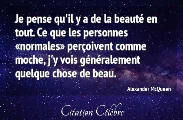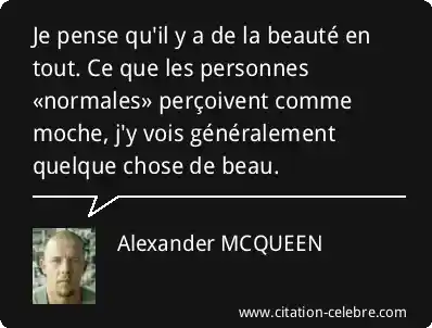 Je pense qu'il y a de la beauté en tout. Ce que les personnes «normales» perçoivent comme moche, j'y vois généralement quelque chose de beau.