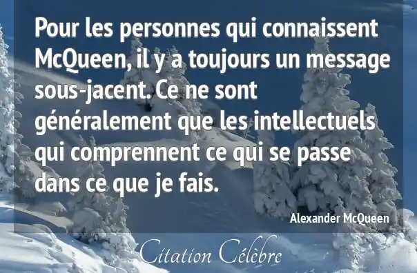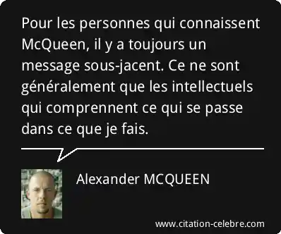 Pour les personnes qui connaissent McQueen, il y a toujours un message sous-jacent. Ce ne sont généralement que les intellectuels qui comprennent ce qui se passe dans ce que je fais.