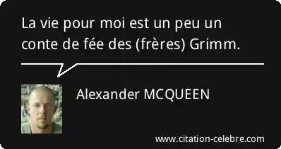 La vie pour moi est un peu un conte de fée des (frères) Grimm.