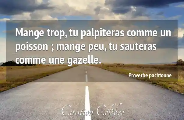 Mange trop, tu palpiteras comme un poisson ; mange peu, tu sauteras comme une gazelle.