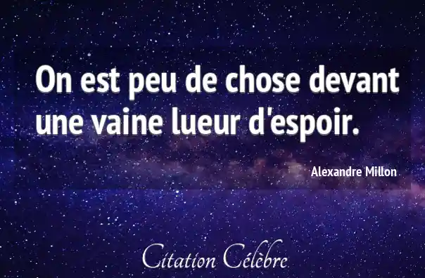 On est peu de chose devant une vaine lueur d'espoir.
