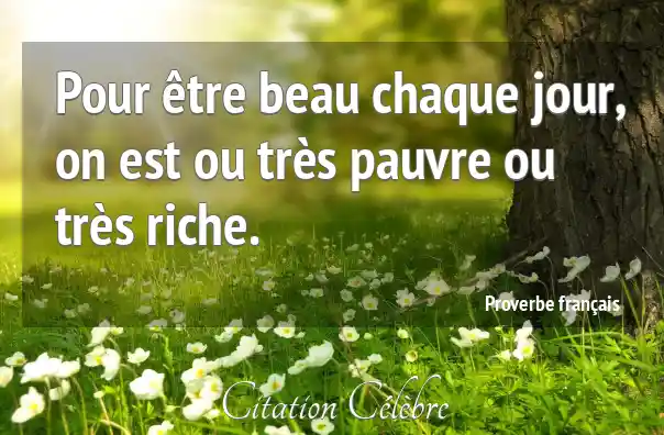 Pour être beau chaque jour, on est ou très pauvre ou très riche.