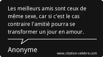 Les meilleurs amis sont ceux de même sexe, car si c'est le cas contraire l'amitié pourra se transformer un jour en amour.