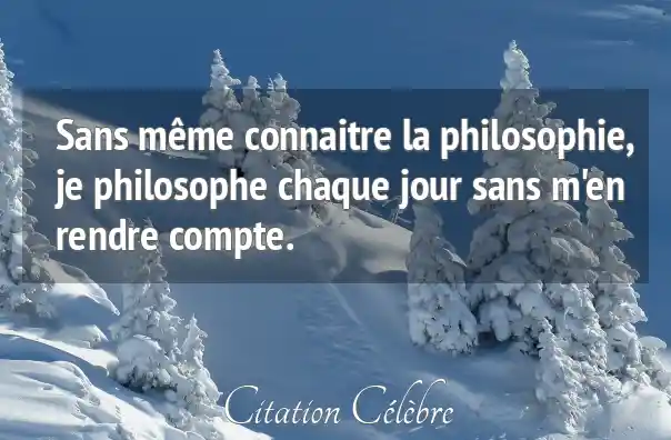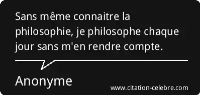 Sans même connaitre la philosophie, je philosophe chaque jour sans m'en rendre compte.