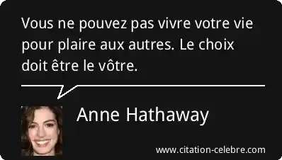 Vous ne pouvez pas vivre votre vie pour plaire aux autres. Le choix doit être le vôtre.