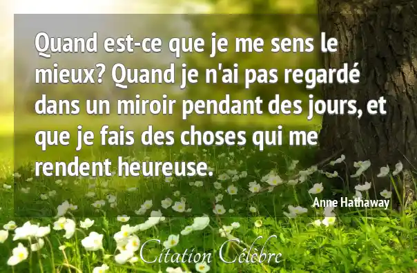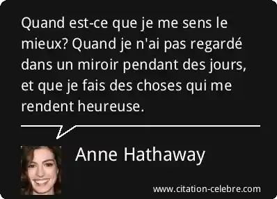 Quand est-ce que je me sens le mieux? Quand je n'ai pas regardé dans un miroir pendant des jours, et que je fais des choses qui me rendent heureuse.