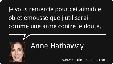 Je vous remercie pour cet aimable objet émoussé que j'utiliserai comme une arme contre le doute.