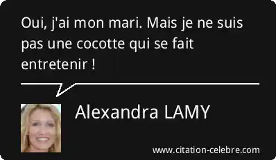 Oui, j'ai mon mari. Mais je ne suis pas une cocotte qui se fait entretenir !
