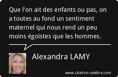 Que l'on ait des enfants ou pas, on a toutes au fond un sentiment maternel qui nous rend un peu moins égoïstes que les hommes.