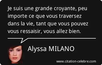 Je suis une grande croyante, peu importe ce que vous traversez dans la vie, tant que vous pouvez vous ressaisir, vous allez bien.
