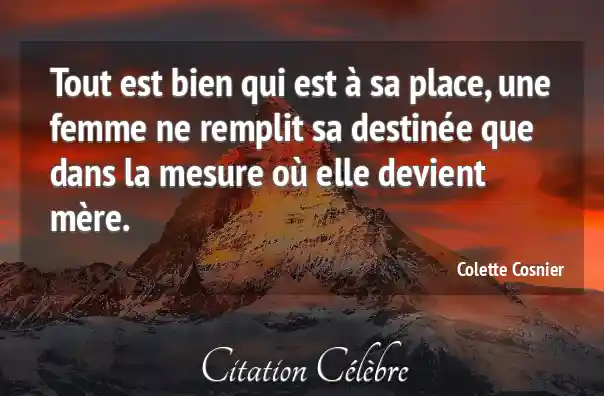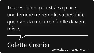 Tout est bien qui est à sa place, une femme ne remplit sa destinée que dans la mesure où elle devient mère.