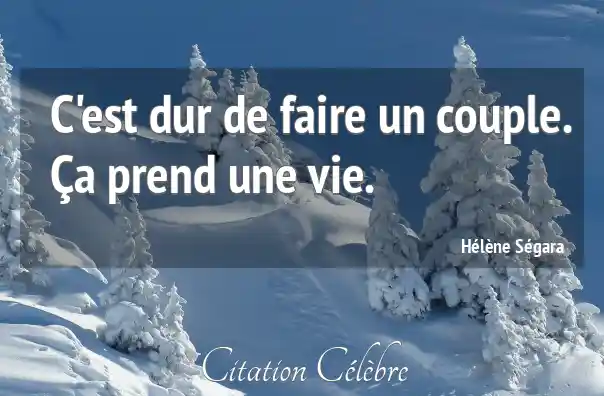 C'est dur de faire un couple. Ça prend une vie.