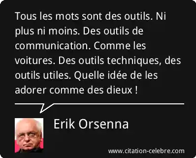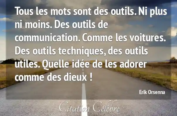 Tous les mots sont des outils. Ni plus ni moins. Des outils de communication. Comme les voitures. Des outils techniques, des outils utiles. Quelle idée de les adorer comme des dieux !