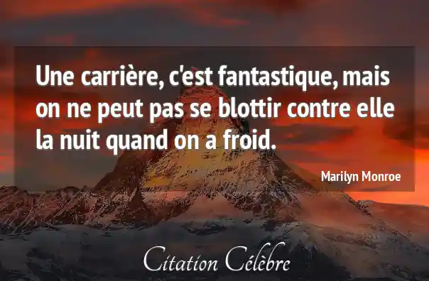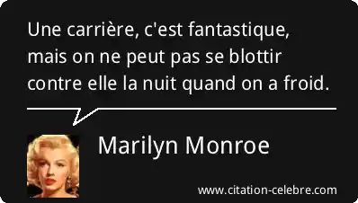 Une carrière, c'est fantastique, mais on ne peut pas se blottir contre elle la nuit quand on a froid.