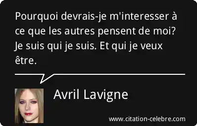 Pourquoi devrais-je m'interesser à ce que les autres pensent de moi? Je suis qui je suis. Et qui je veux être.