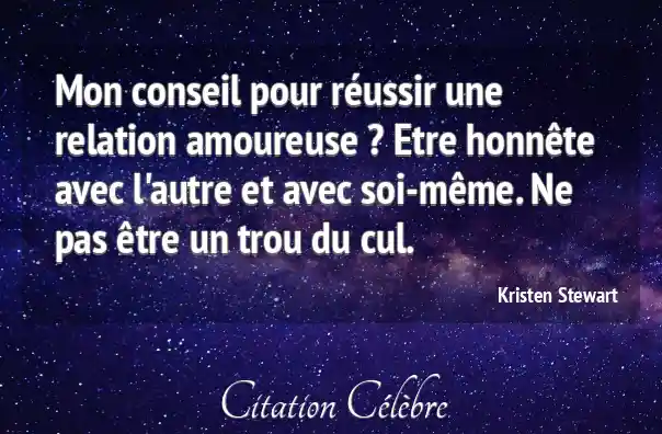 Citation Kristen Stewart autre : Mon conseil pour réussir une relation amoureuse ? Etre honnête...