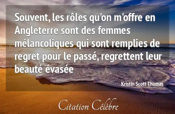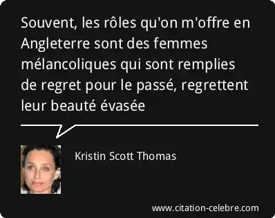 Souvent, les rôles qu'on m'offre en Angleterre sont des femmes mélancoliques qui sont remplies de regret pour le passé, regrettent leur beauté évasée