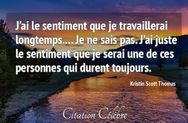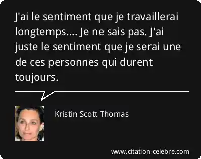 J'ai le sentiment que je travaillerai longtemps.... Je ne sais pas. J'ai juste le sentiment que je serai une de ces personnes qui durent toujours.