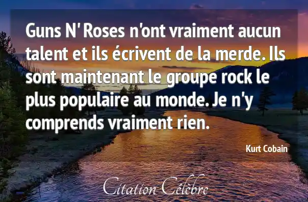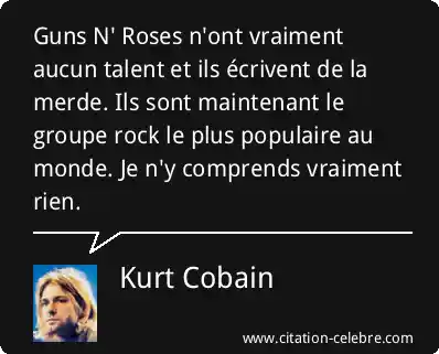 Guns N' Roses n'ont vraiment aucun talent et ils écrivent de la merde. Ils sont maintenant le groupe rock le plus populaire au monde. Je n'y comprends vraiment rien.