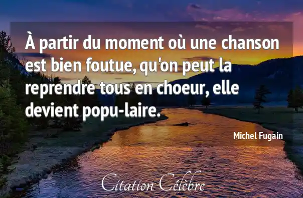 À partir du moment où une chanson est bien foutue, qu'on peut la reprendre tous en choeur, elle devient populaire.