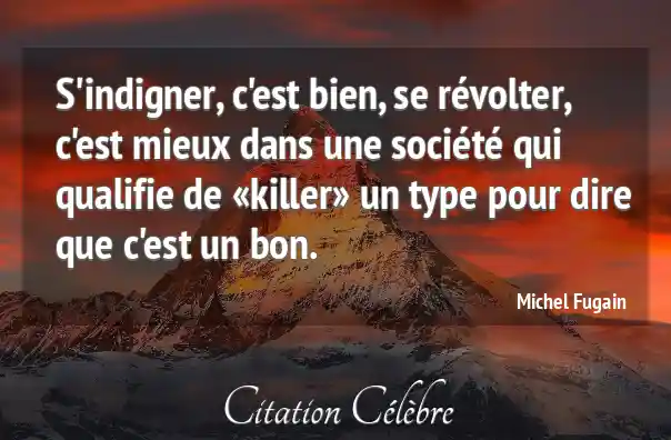 S'indigner, c'est bien, se révolter, c'est mieux dans une société qui qualifie de «killer» un type pour dire que c'est un bon.