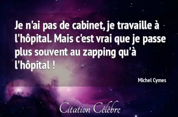 Je n'ai pas de cabinet, je travaille à l'hôpital. Mais c'est vrai que je passe plus souvent au zapping qu'à l'hôpital !