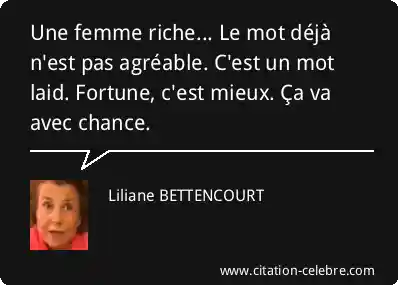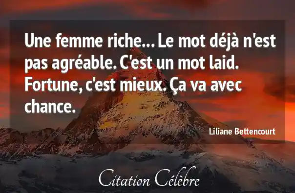 Une femme riche... Le mot déjà n'est pas agréable. C'est un mot laid. Fortune, c'est mieux. Ça va avec chance.