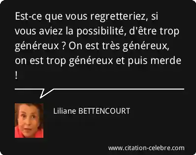 Est-ce que vous regretteriez, si vous aviez la possibilité, d'être trop généreux ? On est très généreux, on est trop généreux et puis merde !