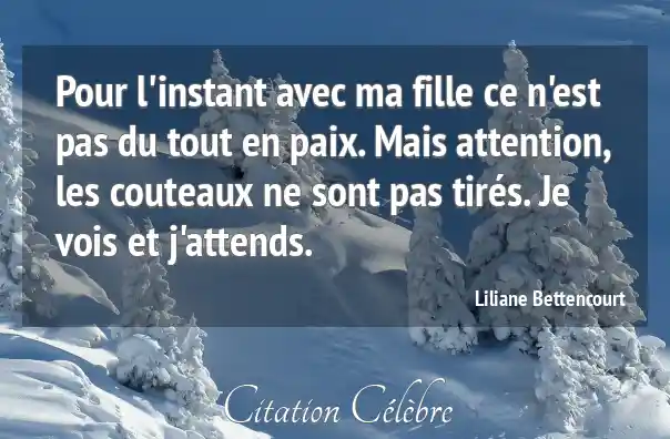 Pour l'instant avec ma fille ce n'est pas du tout en paix. Mais attention, les couteaux ne sont pas tirés. Je vois et j'attends.