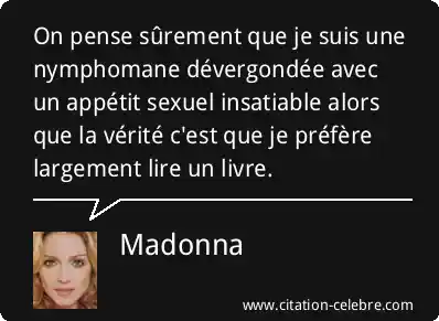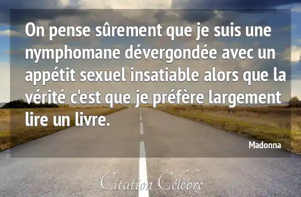 On pense sûrement que je suis une nymphomane dévergondée avec un appétit sexuel insatiable alors que la vérité c'est que je préfère largement lire un livre.
