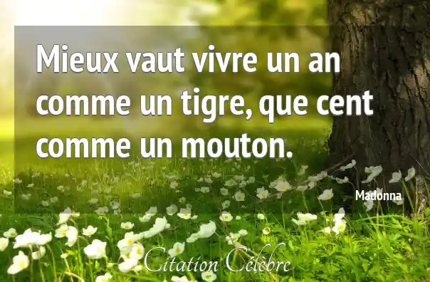 Mieux vaut vivre un an comme un tigre, que cent comme un mouton.