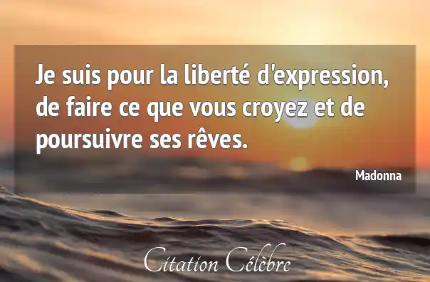 Je suis pour la liberté d'expression, de faire ce que vous croyez et de poursuivre ses rêves.